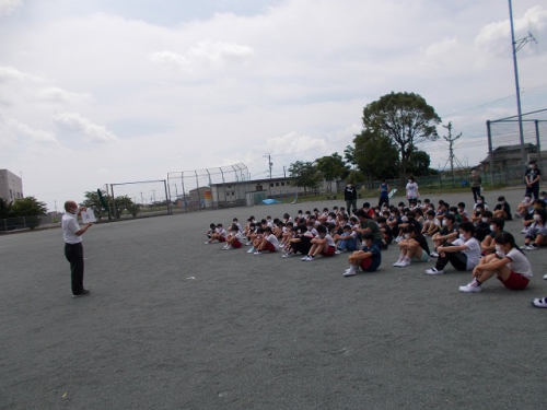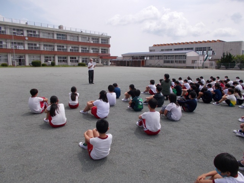12日に実施予定の第1回避難訓練を実施しました。放送で避難指示が出てから2分30秒で運動場に避難し、全員の無事を確認しました。これからも様々な「難」が予想されます。被害を最小限に食い止め、全員が無事に「ただいま」と家に帰れるよう、学校での避難訓練を積み重ねていきます。「大難を小難に 小難を無難に!」