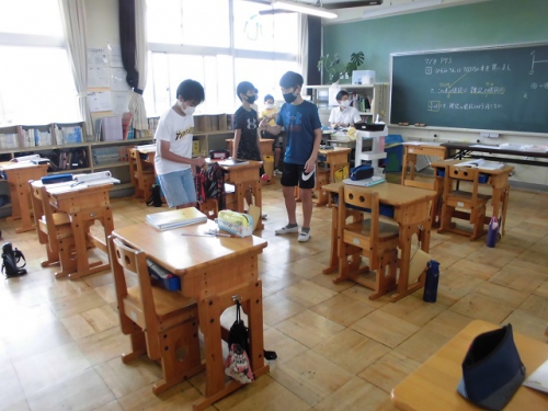 7日は七夕でしたが、コロナウィルスのためお祭り行事も中止や延期になっています。鵲小恒例の七夕集会も今の時点では秋に延期になっています。先週末から九州や東海地方でも大雨による被害が拡大しています。今朝も避難情報が出て心配されましたが、子どもたちはほとんど休まずに通学してきました。多くの犠牲を教訓に私たちも災害に対する備えをしっかりとしていきましょう。業間休みは運動場に出られなかったので、教室や図書室で過ごしていました。