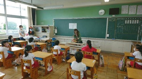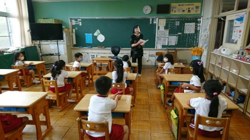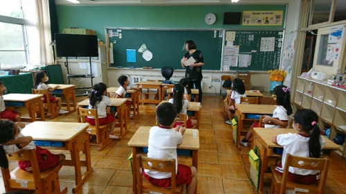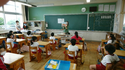 今日はコミュニティ・スクール読書活動部の方に来てもらって、朝の読み聞かせをしてもらいました。今日は読み聞かせの際にフェイスシールドを着用してしてもらいました。マスク着用時よりうまく読み聞かせができたそうです。1年生はホタルの話をしてもらいました。鵲地区でもホタルは見られるのでしょうか。ホタルを見たことがない児童もいるようでした。
