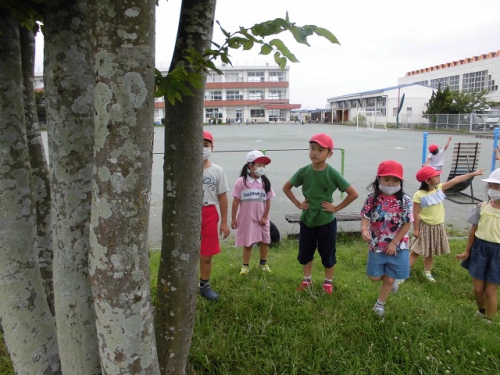 今年の夏休みは公立校の9割以上で短縮するそうです。鵲小は8月1日~19日までが夏休みです。例年の約1/2の長さの夏休みをどう過ごすか、ぜひ親子で話し合ってみてください。コロナ感染が拡大し、今までの夏休みのように好きな所へお出かけというわけにもいきません。家族で向き合って時を過ごす機会になればと思います。「ピンチをチャンスに」と言います。コロナ禍が「禍(わざわい)転じて福となる」ような毎日を過ごしてもらえたらと思います。今日も子どもたちは、せみ やら とかげやら捕まえたり、異年齢で遊んだり、とても楽しそうなお昼休みでした
