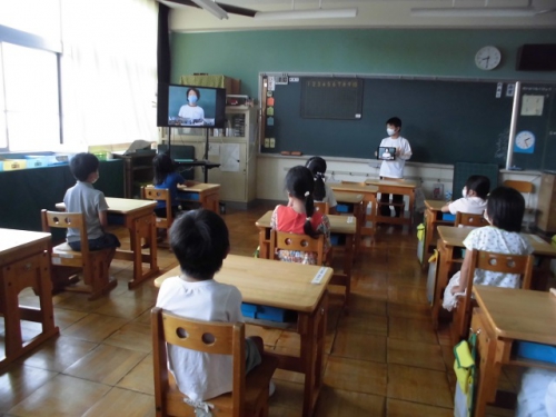 二日間にわたって朝の会と朝学の時間を使ってリモートで集会を行いました。児童会役員が準備をし、電子黒板やiPadを使って当日も運営しました。今までは体育館で全員が集まって行っていたのですが、コロナウィルス感染拡大防止の取組として、児童会が準備を進めていました。初めてのことでうまくいかなかったり戸惑ったこともありましたが、画像やマイクを通して各教室に思いを届けることができたようです。このような機会を今後も増やしていきたいと思います。