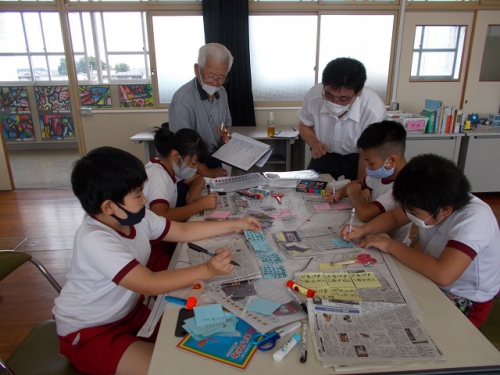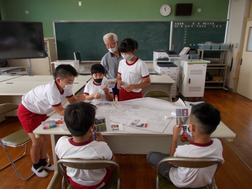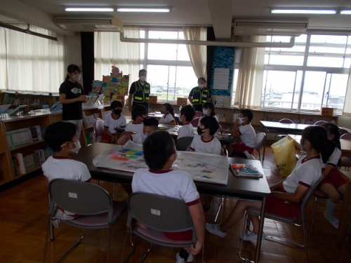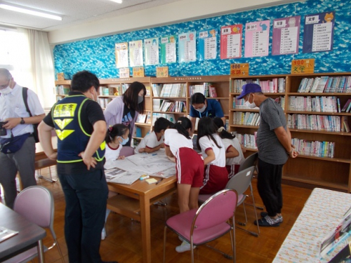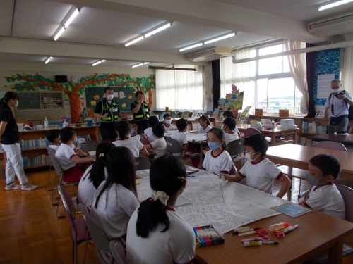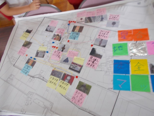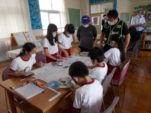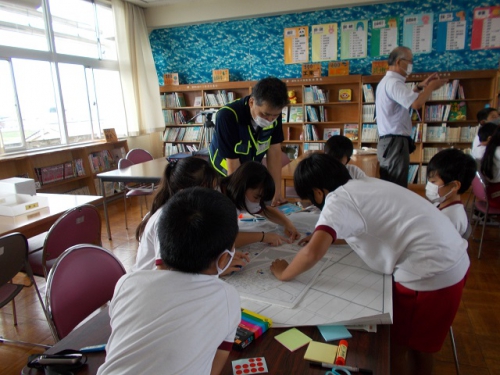 松阪市地域安全対策課、防災対策課、三雲振興局の方に来てもらってタウンウオッチングを行いました。4年生17名が3班に分かれて、星合地区、五主地区、五主団地地区を子どもたちの視点で見て回り、市の職員さんや地元の方から防災、防犯、交通安全の視点からさらに詳しく教わりました。日頃は気づかずに歩いている道ですが、いろんな工夫がなされていることや危険な所を見つけることができました。学校に戻って大きなマップに気づいた点を書き込み、子どもたちの安全マップができあがりました。27日の鵲避難訓練の時に体育館に掲示しますので、ご覧になってくださいケーブルテレビでも25日(金)18時~放映されます。