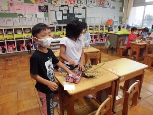 ホーム > 日々の活動の様子 1年生 ひまわりの種 1年生は生活科の時間に学級園に植えてあったひまわりから種を取りました。少し固くて苦労していましたが、手分けしてたくさんの種を取ることができました。 タグ:2020年度 シェアする Twitter でシェア はてなブックマークに保存 LINE でシェア Facebook でシェア Pocket に保存 Feedly で購読 関連投稿 日々の活動の様子 6年生 理科 月の形の見え方 日々の活動の様子 3月 避難訓練 日々の活動の様子 2階の給食風景 お知らせ 学校の臨時休業期間中における児童生徒の犯罪被害防止に関する注意 日々の活動の様子 冬休み前集会と授業 日々の活動の様子 1年生 かき氷の絵を描きました 前の投稿 鵲小学校 タウンウオッチング 次の投稿 朝の読書
