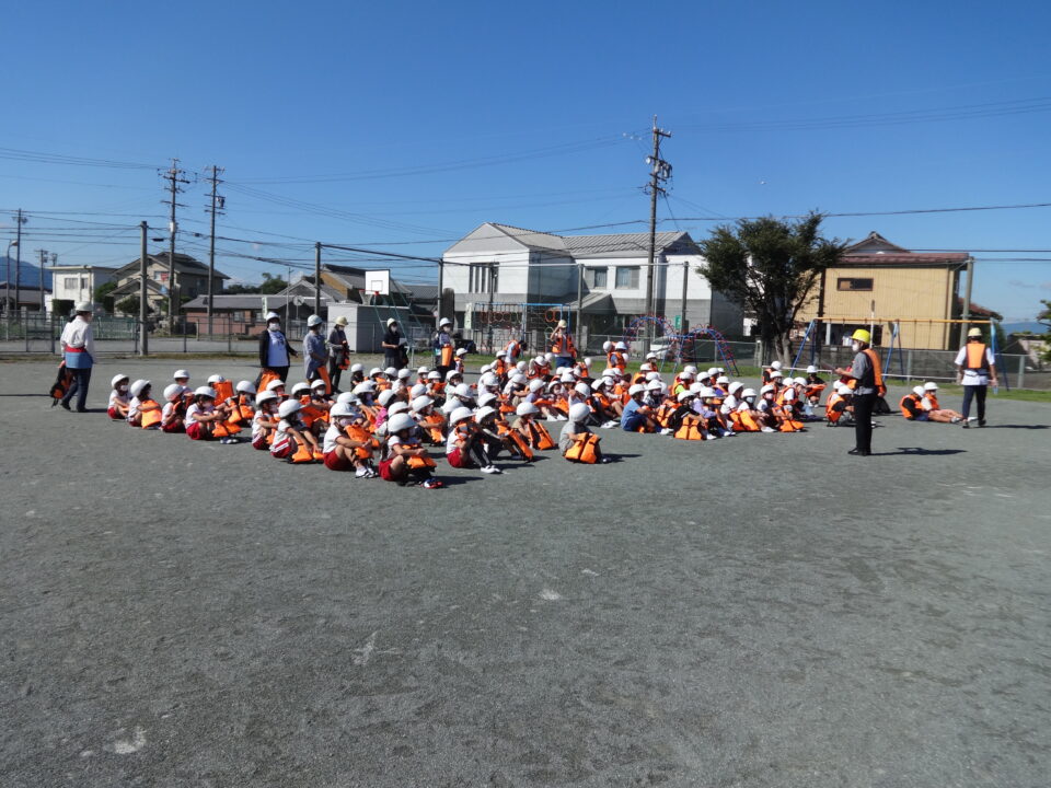 子どもたちは、心構えを持ち、地震が起きた時は「命を守る」行動がしっかりできるように、指示に合わせて、避難することができました。