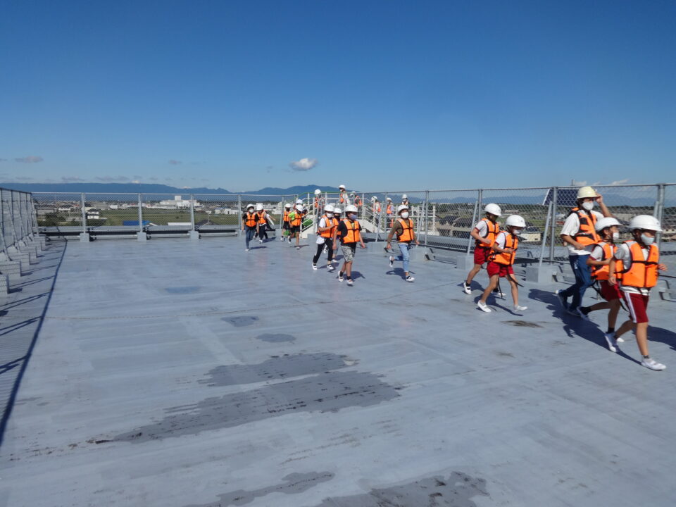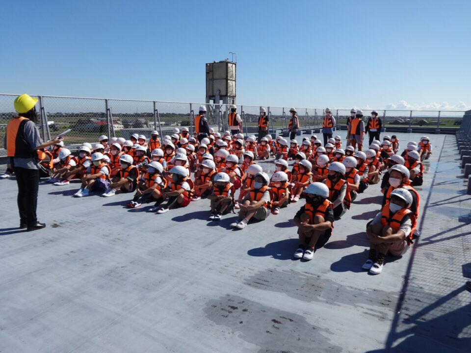 子どもたちは先生の指示、誘導に従って、早く避難することができました。避難にかかった時間は、地震想定の運動場への1次避難が2分48秒、津波想定の校舎屋上への2次避難が3分36秒でした。