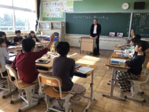 その朝倉さんをお招きし、3年生はお話を聞きました。