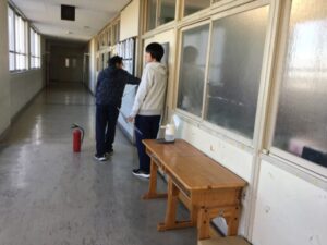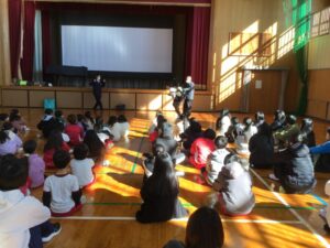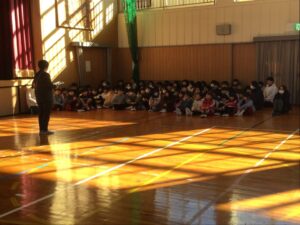 今回は体育館へ全校児童は体育館へ逃げ、施錠をし静かに身を潜めさせました。