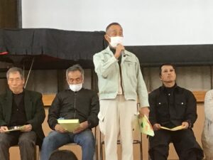 笠松環境保全協会のみなさん、3年生の大豆づくりや、5年生の米作り、1年生の読み聞かせ、
