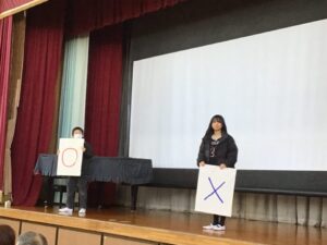 児童会のみなさんが、企画した〇×クイズがありました。それは、ボランティアさん一人ひとりの
