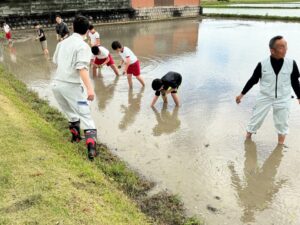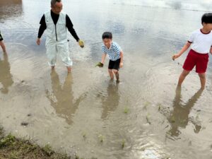 田んぼに入る子どもたちの声が写真で伝わるかな?
