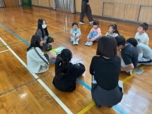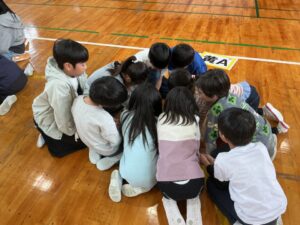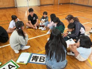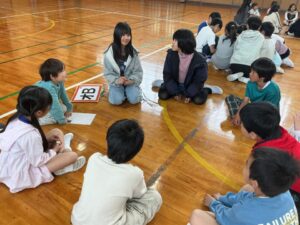 レインボー班は1~6年生の縦割り班で、運動会のリレーをしたり、掃除をしたり、ロング休憩で